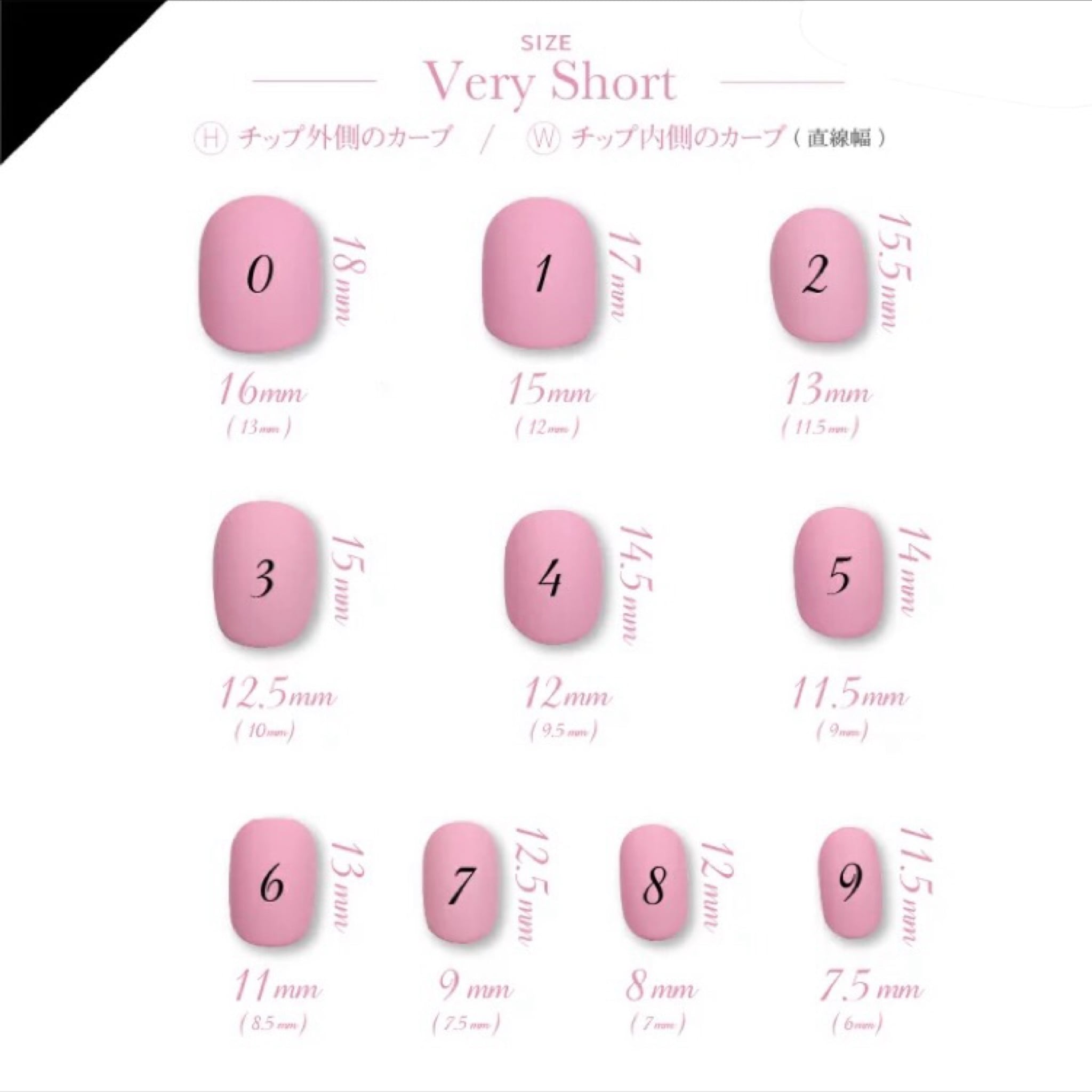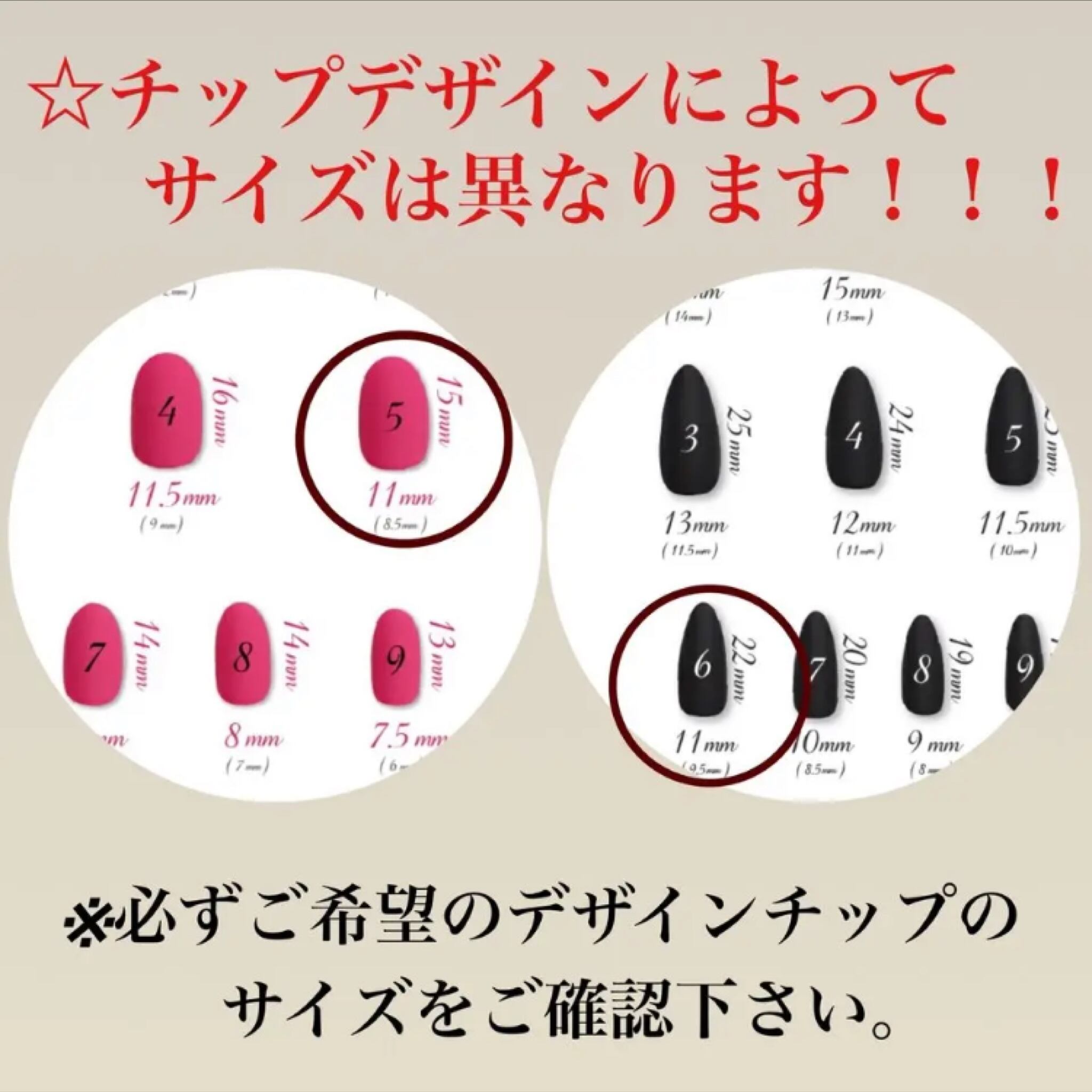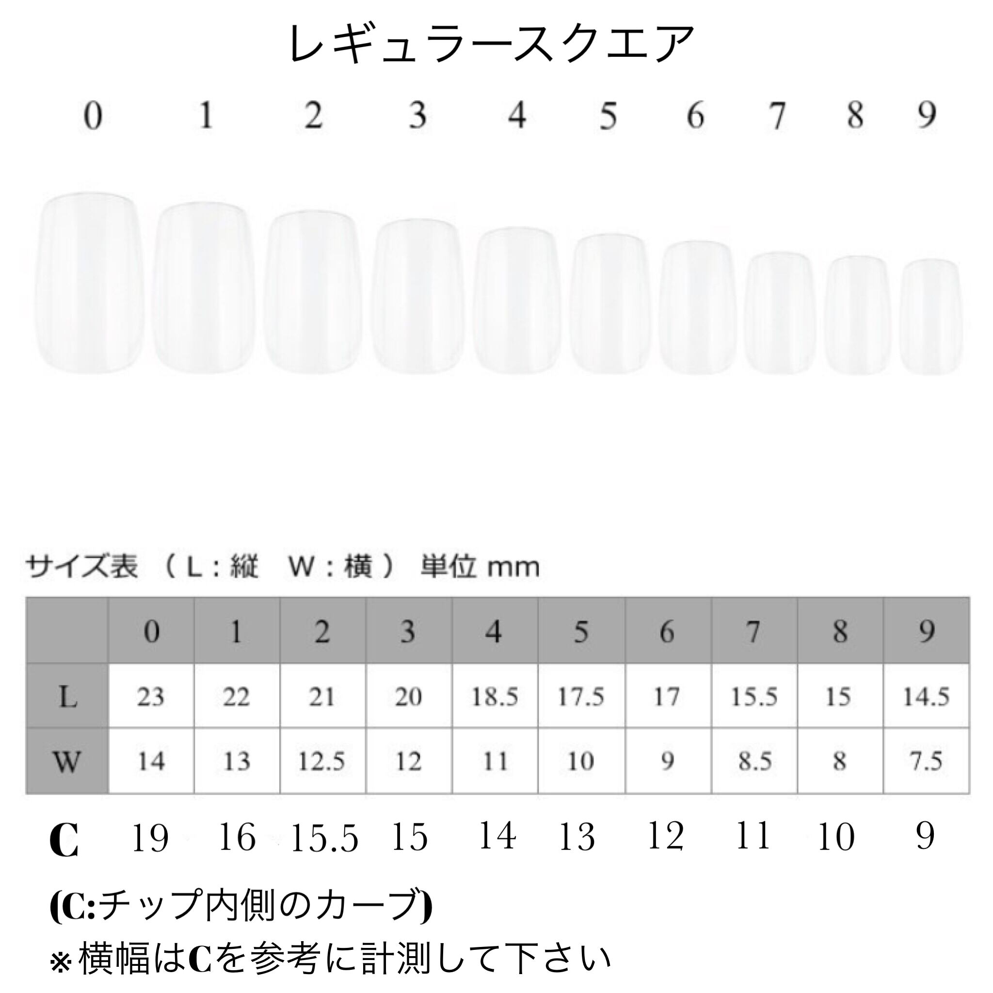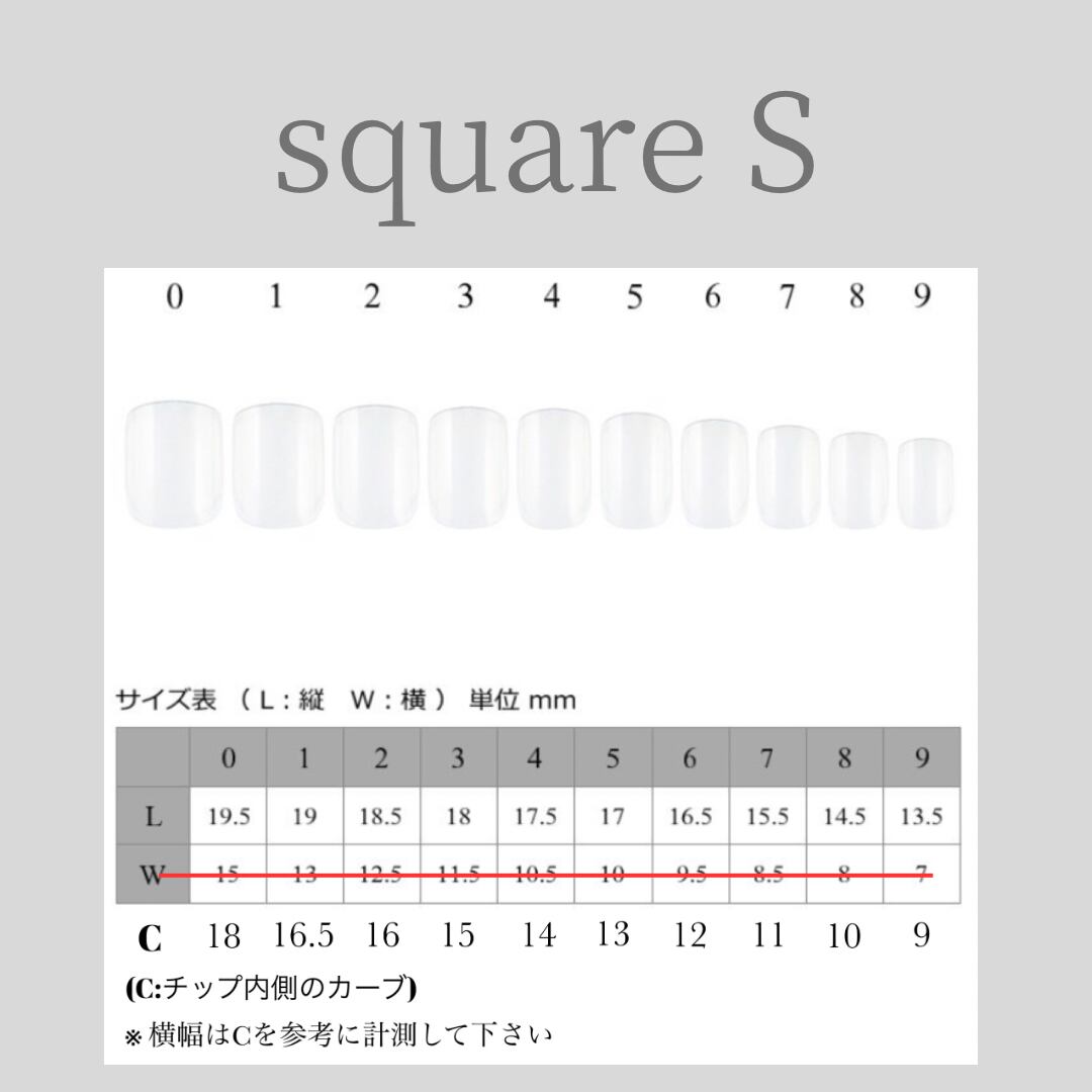 ネイルチップのサイズ表もございます。